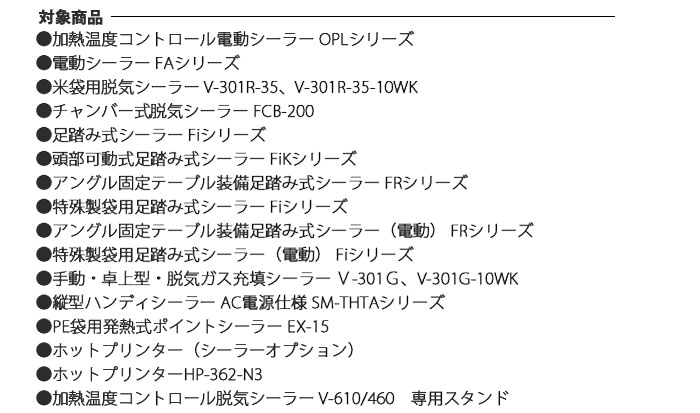 当店はシーラーやシール機のトップメーカーの富士インパルスをはじめ、他社製品にも対応の